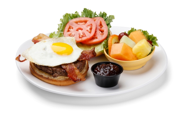 When brunch cravings meet burger cravings, locals often reach for the Breakfast Burger. This half-pound Angus burger is topped with smoked bacon, leaf lettuce, tomato slices, and a hand-cracked sunny-side-up egg. It is finished with Hot Pepper Bacon Jam for just the right touch of breakfast sweetness.