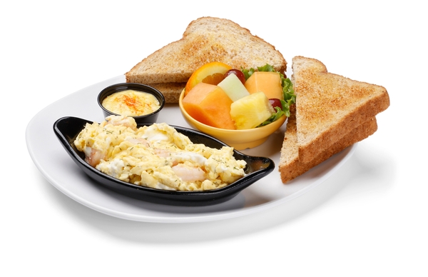 This one surprises a lot of first-time guests and quickly becomes a favorite. Tender, sustainably sourced white shrimp are blended into scrambled eggs with cream cheese and dill. It is served with a side of creamy hollandaise sauce, your choice of bread, and a Scramblers side.